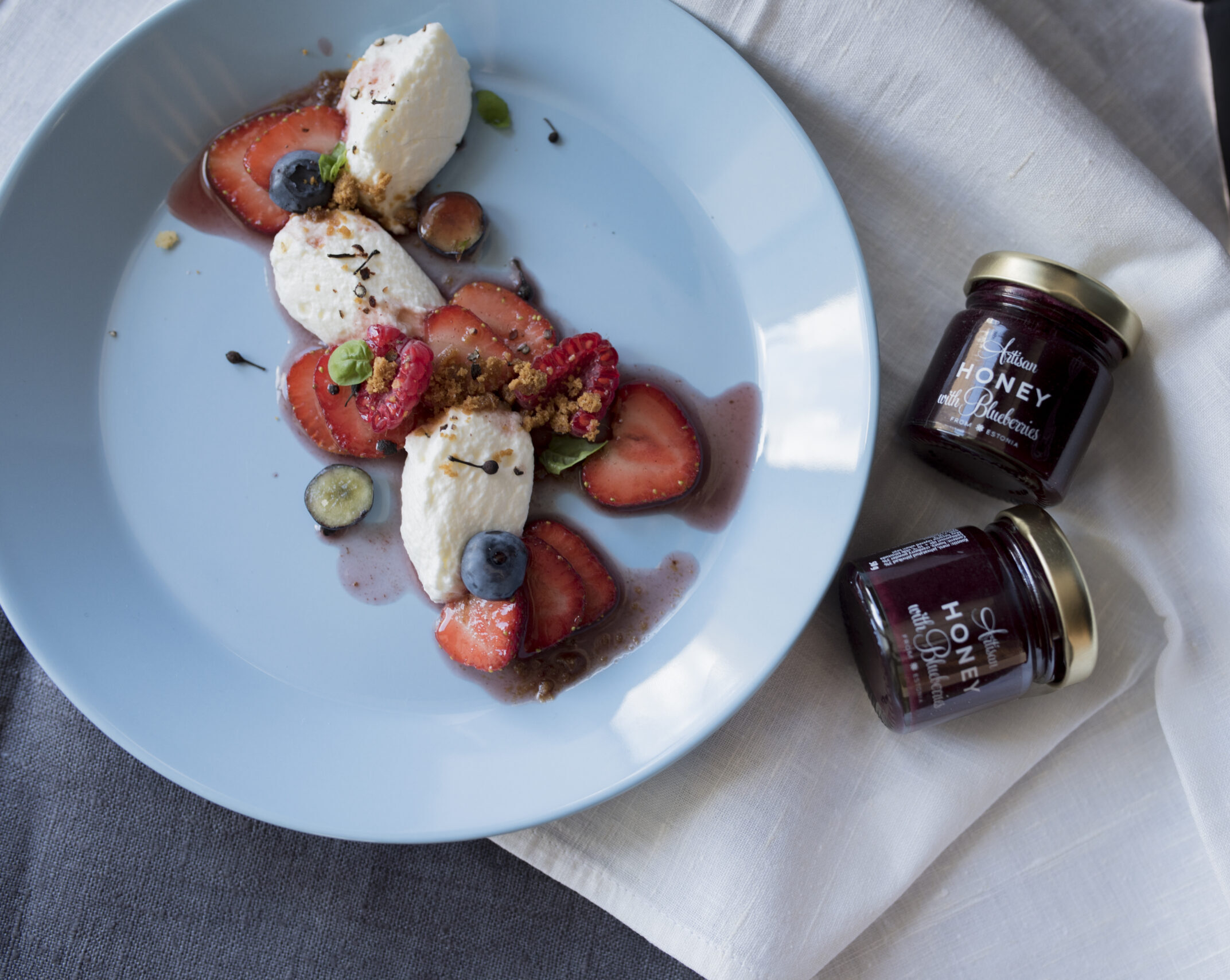 Pannacotta mit Honig und Erdbeer-Minz-Salate